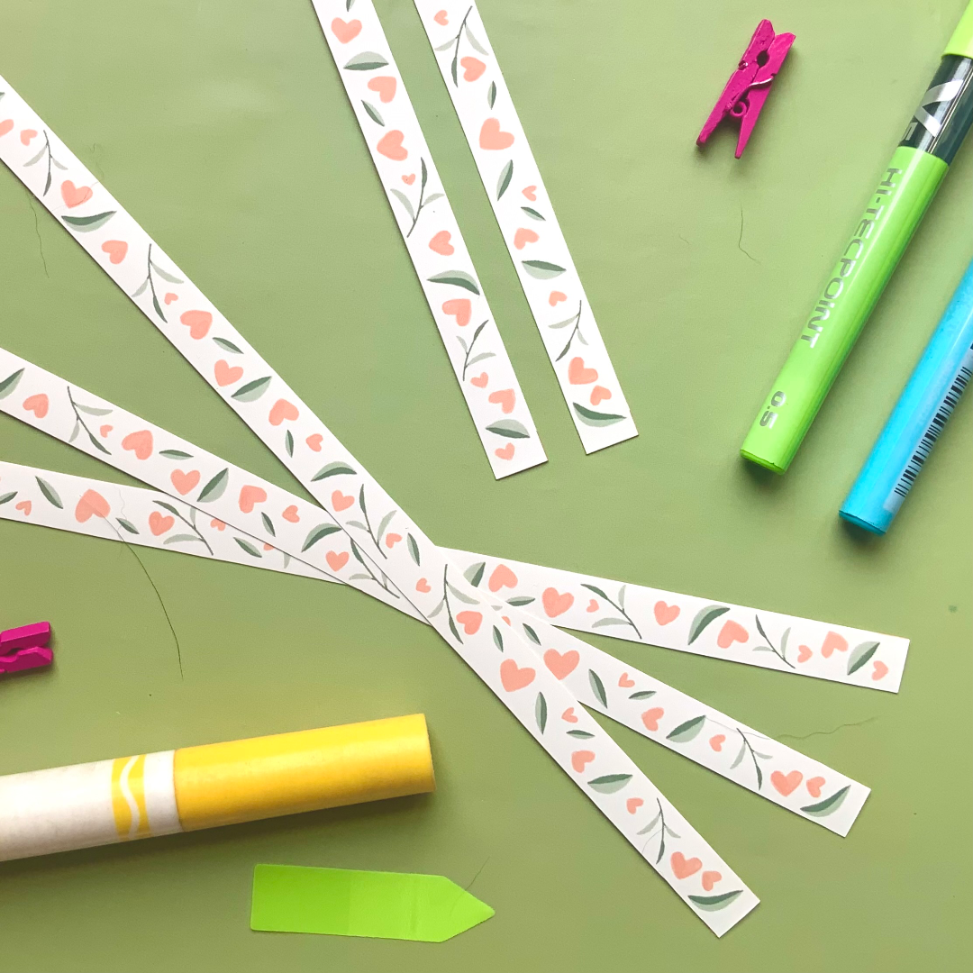 Illustrated washi tape strips. These are perfect for decorating planners, sketchbooks, journals, calendars, letters, gift wrapping and so much more. Its super versatile and the possibilities are endless with this one. Simply peel off a strip of sticker and apply on your project. If you need more length, easily continue the line with another strip of sticker for a seamless pattern continuation.